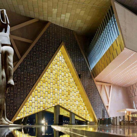 The GEM stands as the largest museum in the world dedicated to a single civilization. Spanning over 480,000 square meters, its design combines modern architecture with stunning views of the ancient Giza pyramids.